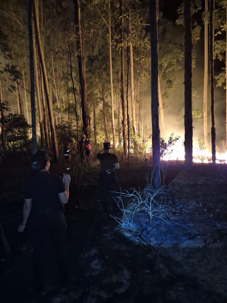 En el lugar trabajaron de manera conjunta efectivos de la Comisaría local dependiente de la UR-XI y Bomberos Voluntarios, quienes realizaron tareas intensivas para sofocar las llamas y evitar su propagación.