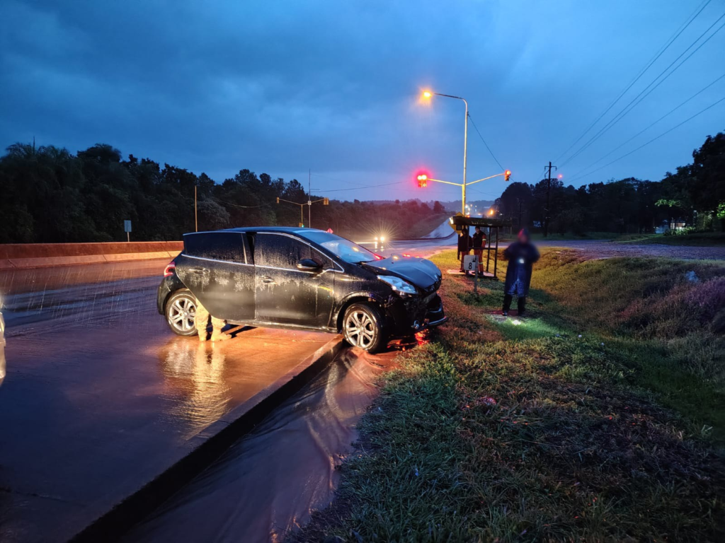 Un automóvil despistó esta mañana sobre la Ruta Nacional N° 105, a la altura del kilómetro 8, en cercanías del acceso al barrio El Chogüí de Garupá, sin que se registraran personas lesionadas. El siniestro ocurrió en medio de intensas lluvias y dejó únicamente daños materiales en el vehículo involucrado.