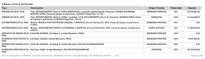 La casa no figura en la declaración jurada pública de 2024. Tampoco hay confirmación de que haya sido incluida en un anexo reservado.