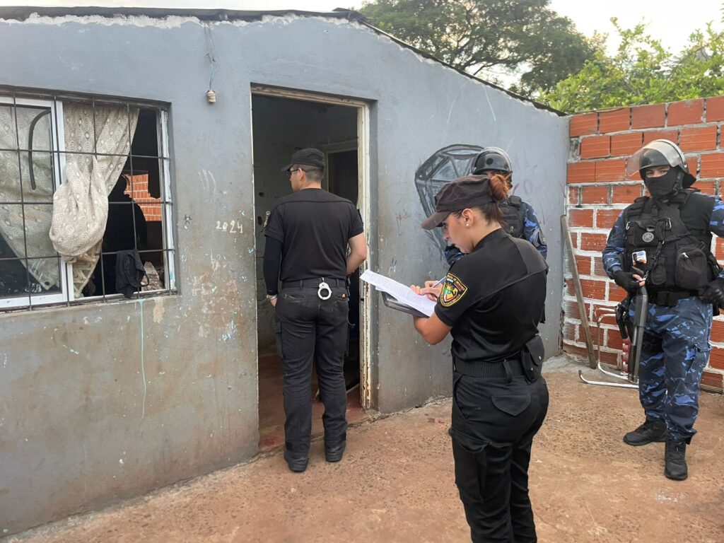 Fue así que, en la madrugada de este sábado 28 de febrero alrededor de las 5:40 horas, se llevó adelante un allanamiento en una vivienda ubicada sobre calle Ramón Ayala y 149, en la misma chacra. El despliegue fue encabezado por efectivos de la Comisaría de la Mujer Oeste, con apoyo de la Dirección Guardia de Infantería, el Comando Táctico Especial Oeste y la Comisaría 13.ª.