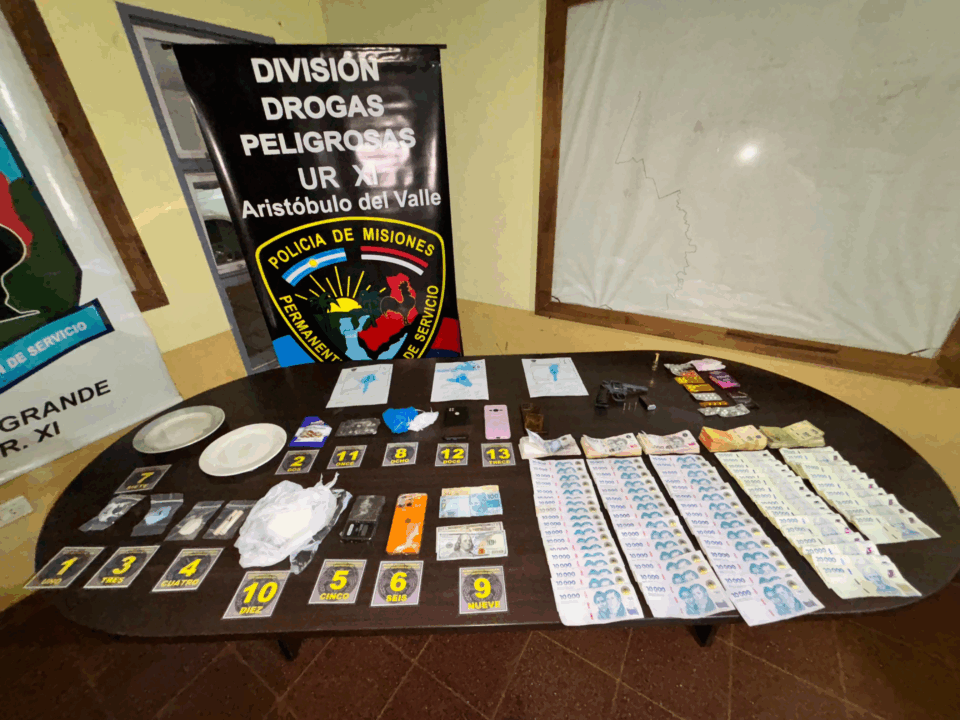 El procedimiento se concretó ayer por la tarde, alrededor de las 18:50 horas. Durante el operativo, los uniformados demoraron a cuatro personas que se encontraban en el inmueble y procedieron al secuestro de diversas prendas femeninas, un revólver calibre .22 marca Doberman, la suma de 1.740.512 pesos, 150 reales y 150 dólares, tres teléfonos celulares, una balanza de precisión y elementos utilizados para el corte y fraccionamiento, además de envoltorios con una sustancia compatible con clorhidrato de cocaína, lo que amplió el alcance de la investigación judicial en curso.