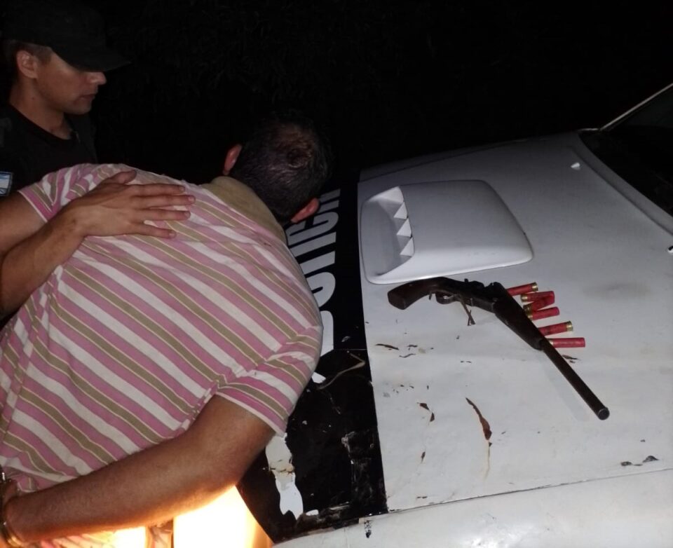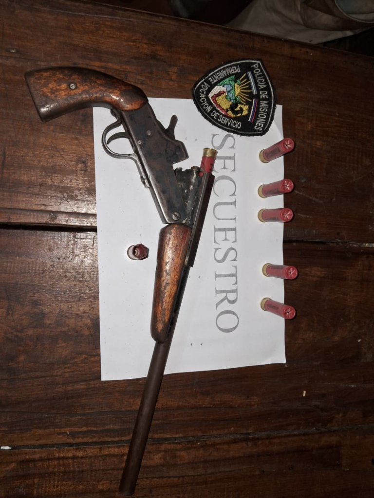 Un hombre de 43 años fue detenido el martes por la noche en el barrio Belgrano de Pozo Azul, luego de amenazar de muerte a su pareja y al hijo de esta con un arma de fuego, para luego huir realizando un disparo en el monte. En el procedimiento, la Policía secuestró un pistolón con municiones junto a una vaina servida.