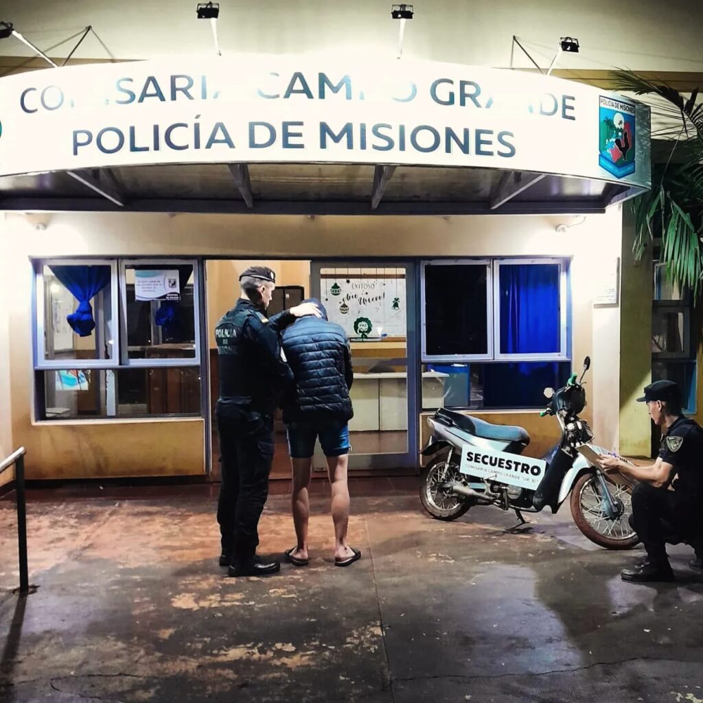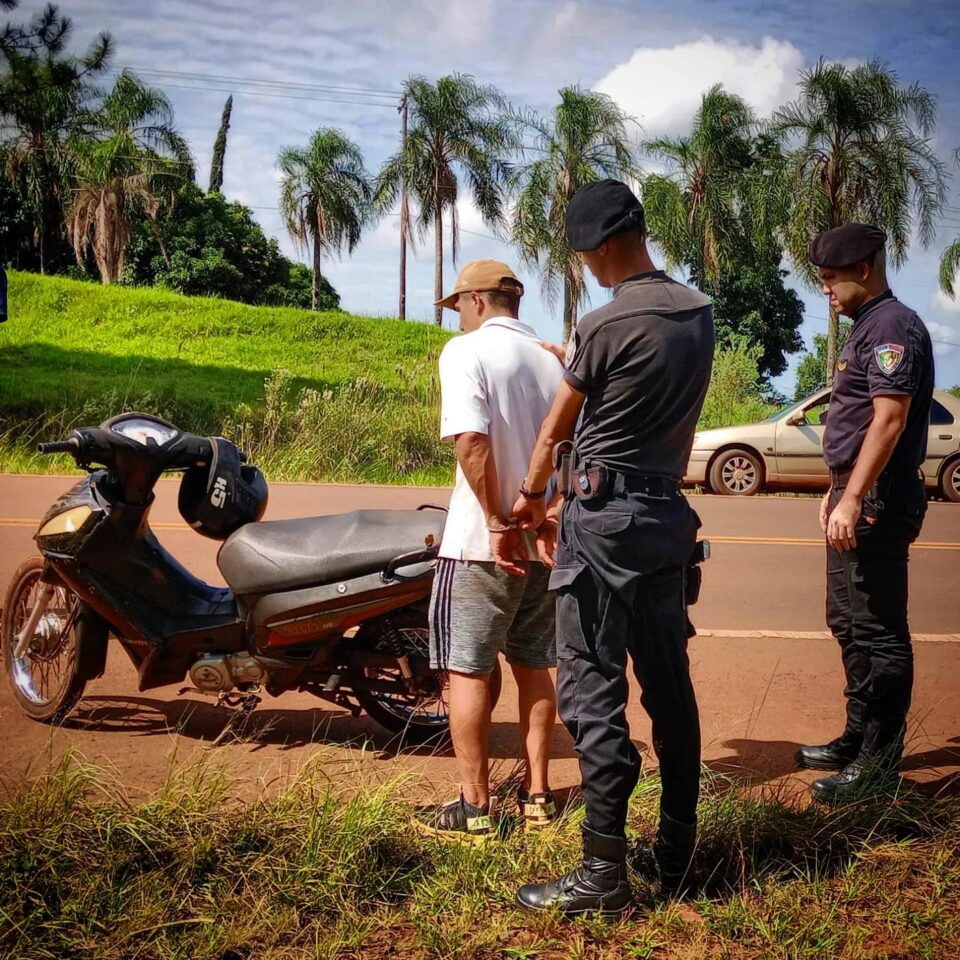 Primeramente en San Vicente, la División Comando Radioeléctrico detuvo esta tarde a un hombre de 29 años sobre la Ruta Nacional 14 al kilómetro 983, quien fue sorprendido empujando una moto Corven Energy 110cc. la cual fue sustraída en horas de la mañana en la calle Juan XXIII, hecho denunciado por la propietaria del vehículo.