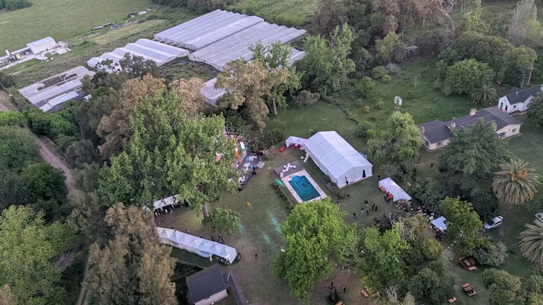 Hasta ese lugar en La Plata llegaron los policías de la Provincia de Buenos Aires. Sobrevolaron el predio en helicóptero, desde donde se pudo ver un gran escenario montado sobre el césped, una pileta de varios metros, una carpa para alojar invitados y luces, todo rodeado de árboles.