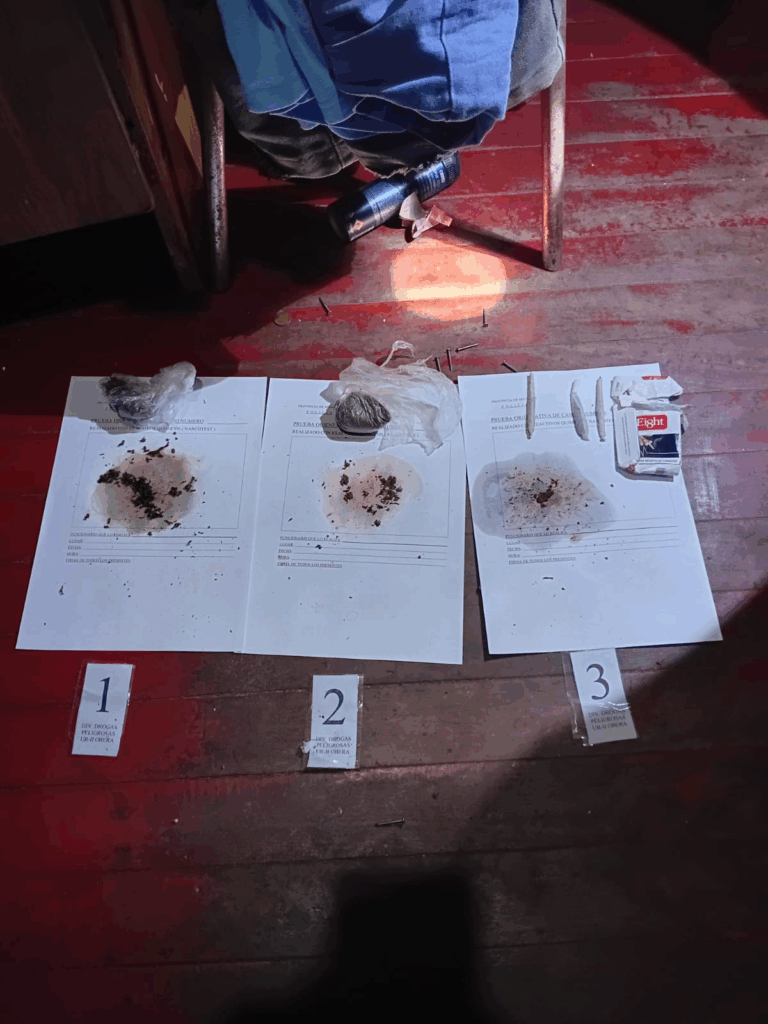 En el procedimiento se secuestraron tres teléfonos adicionales, varias bolsas con ropa íntima infantil, pañales con fluidos, preservativos y otros elementos de interés para la causa. Además, los efectivos hallaron dos envoltorios y una caja de cigarrillos con marihuana, que tras las pericias arrojó un peso total de 17,7 gramos de cannabis sativa