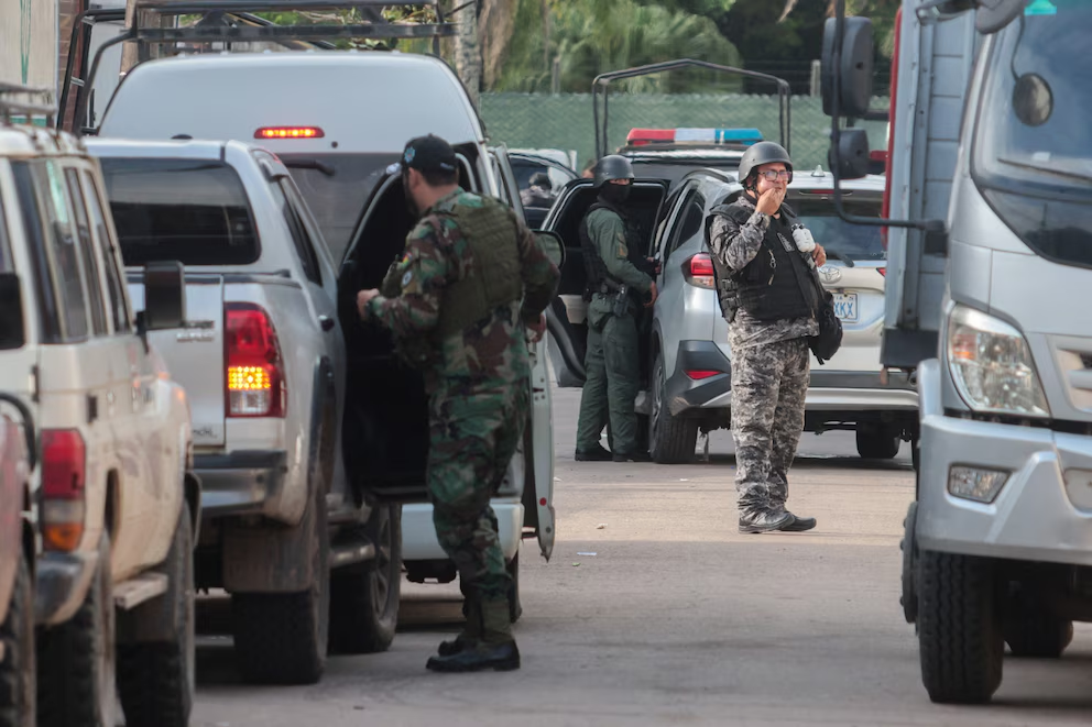 Policías mantienen vigilia en el barrio donde se produjo la captura del narcotraficante Sebastián Marset. Santa Cruz de la Sierra, Bolivia. 13 de marzo de 2026 (REUTERS/Ipa Ibanez)