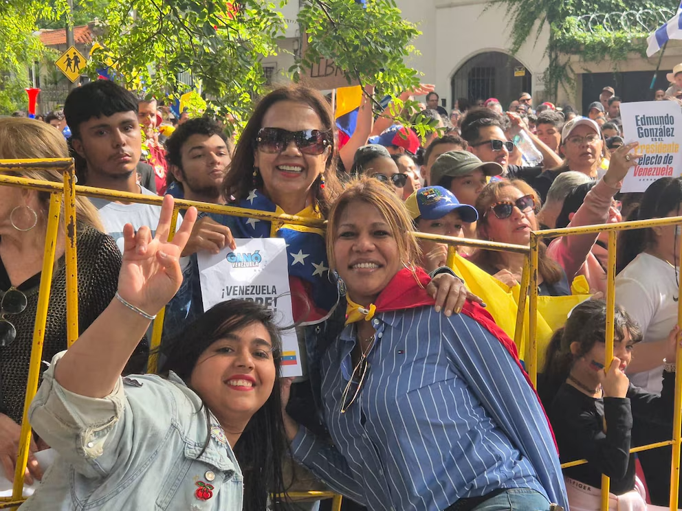 Leydis Aguilera, durante una movilización de venezolanos para la llegada de Edmundo González Urrutia (@ley_aguilera)