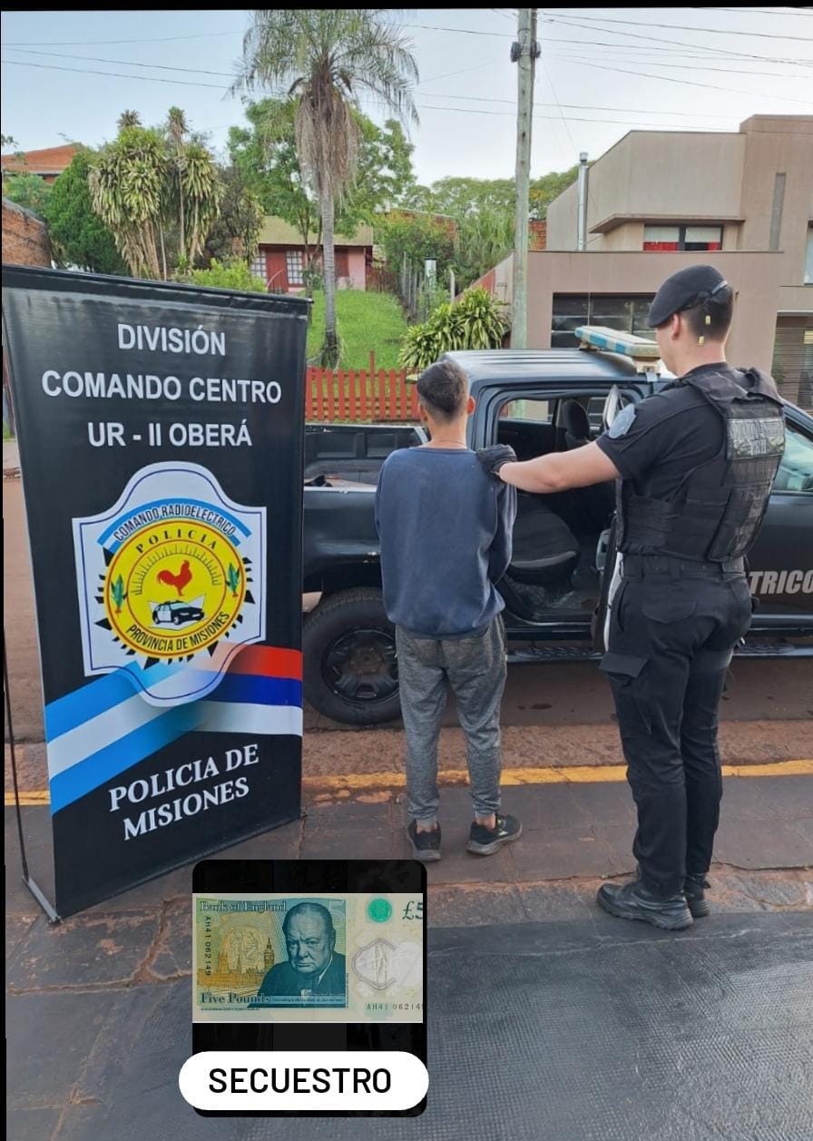 Tras días de vigilancia y tareas encubiertas, efectivos del Comando Radioeléctrico lograron detener a “Dani” de 19 años, en el barrio 40 Viviendas del sector Lombardi. En su poder se halló un billete de cinco libras esterlinas, vinculado al primer hecho investigado.