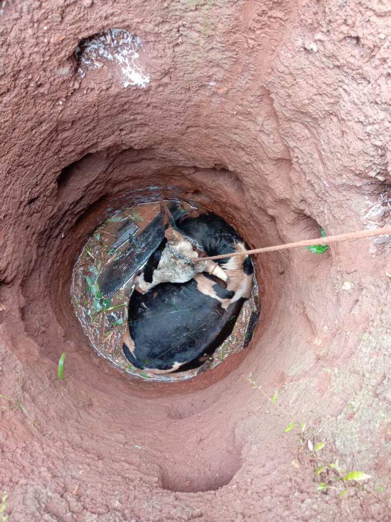 El hecho se registró cerca de las 10 horas, cuando los uniformados fueron requeridos en el lugar y constataron que el animal, de aproximadamente 300 kilos, se encontraba atrapado en una excavación de unos 4 metros de profundidad y un metro de diámetro.