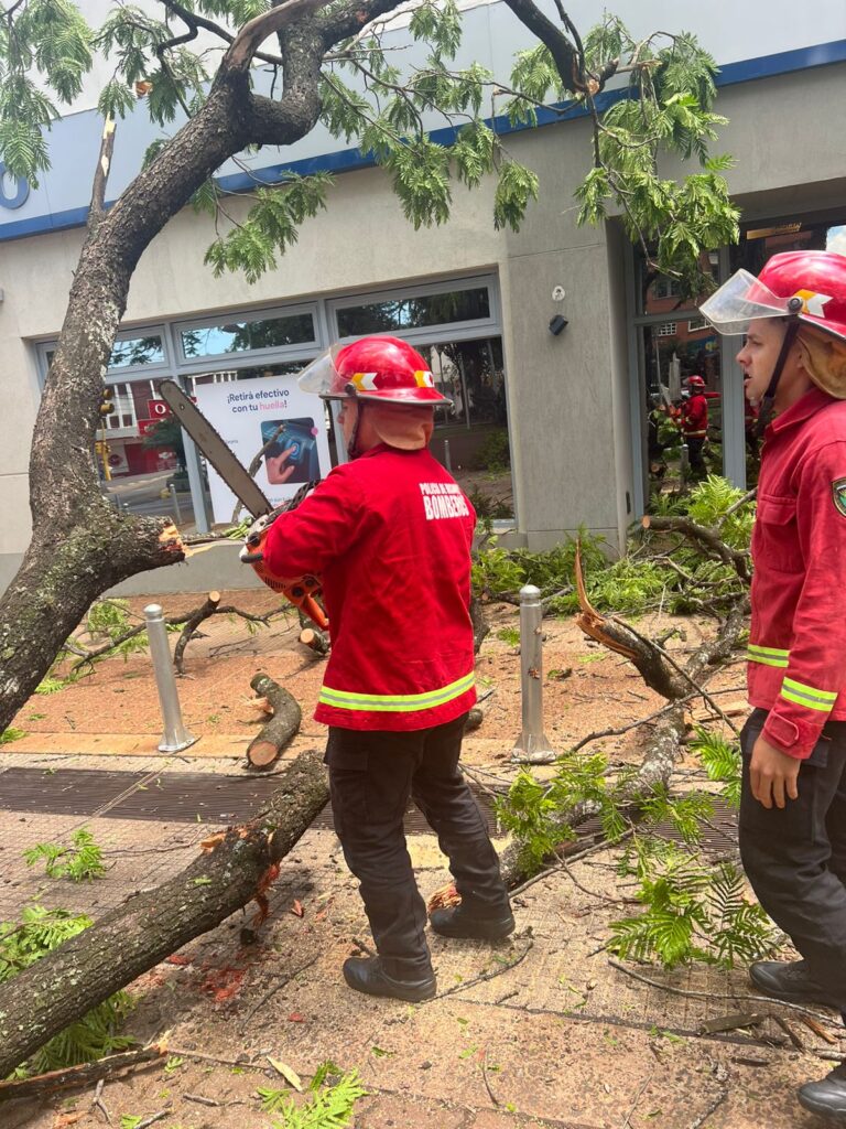 El ejemplar, de varios años, obstruyó parte de la calzada, por lo que el personal trabajó con motosierras para cortar las ramas y liberar la vía pública. No se registraron personas lesionadas, aunque el hecho provocó daños en una farola y en el sistema de alumbrado público.