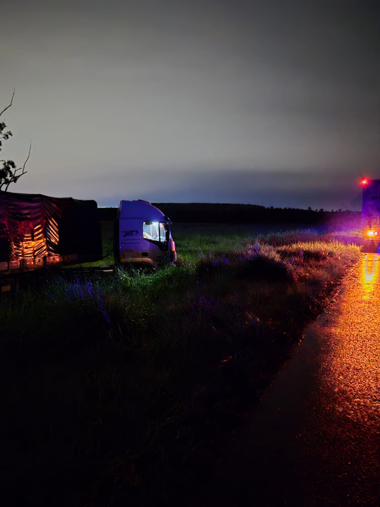 Un camión de transporte despistó durante la madrugada de este domingo sobre la Ruta Nacional 12, en jurisdicción de Posadas, luego de que el conductor se quedara dormido al volante, según manifestó a los uniformados.