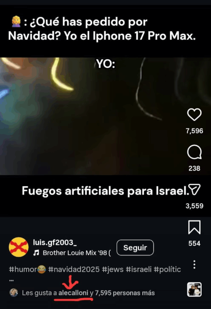 En las últimas horas, se había difundido una captura, en la que se observa que el secretario de la Embajada le habría dado me gusta a una publicación en Instagram, que hacía referencia a gestar un ataque contra el Estado de Israel.