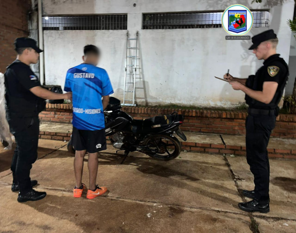 El procedimiento se concretó en la tarde del sábado en la ciudad de Eldorado, donde efectivos de la Comisaría Tercera recuperaron una motocicleta denunciada como robada meses atrás y detuvieron a un hombre de 27 años que circulaba con el rodado sin documentación.