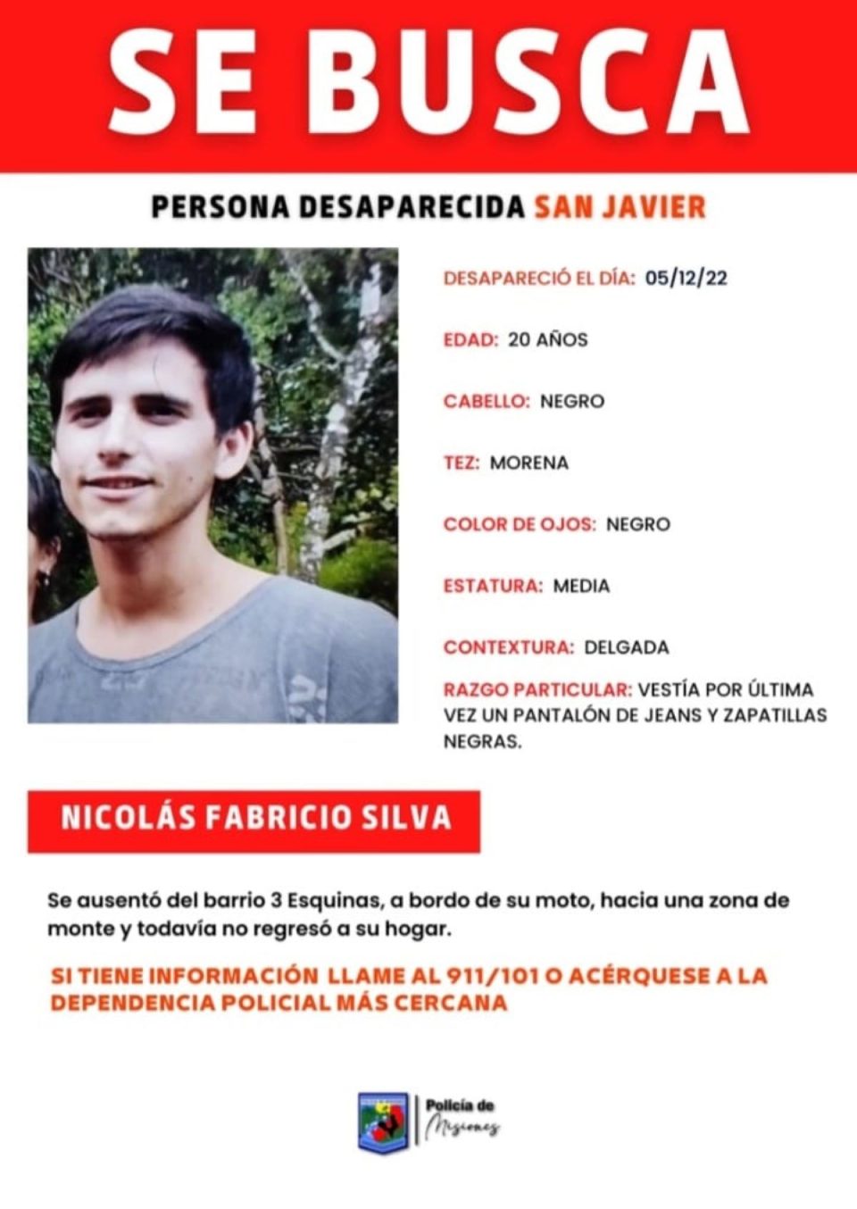 A partir del día de su ausencia, los agentes recabaron varios testimonios de familiares y vecinos del paraje, quienes manifestaron que el joven dejó sus pertenencias y una motocicleta en la casa de su abuelo, para luego dirigirse hacia una zona de monte, de donde no regresó.