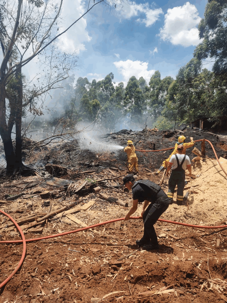 El hecho ocurrió alrededor de las 12:20, cuando se encendió un sector de acopio de aserrín y restos de madera descartada perteneciente a Valeria K.. Según indicaron las fuentes, el fuego quedó circunscripto al material acumulado y no afectó estructuras edilicias.