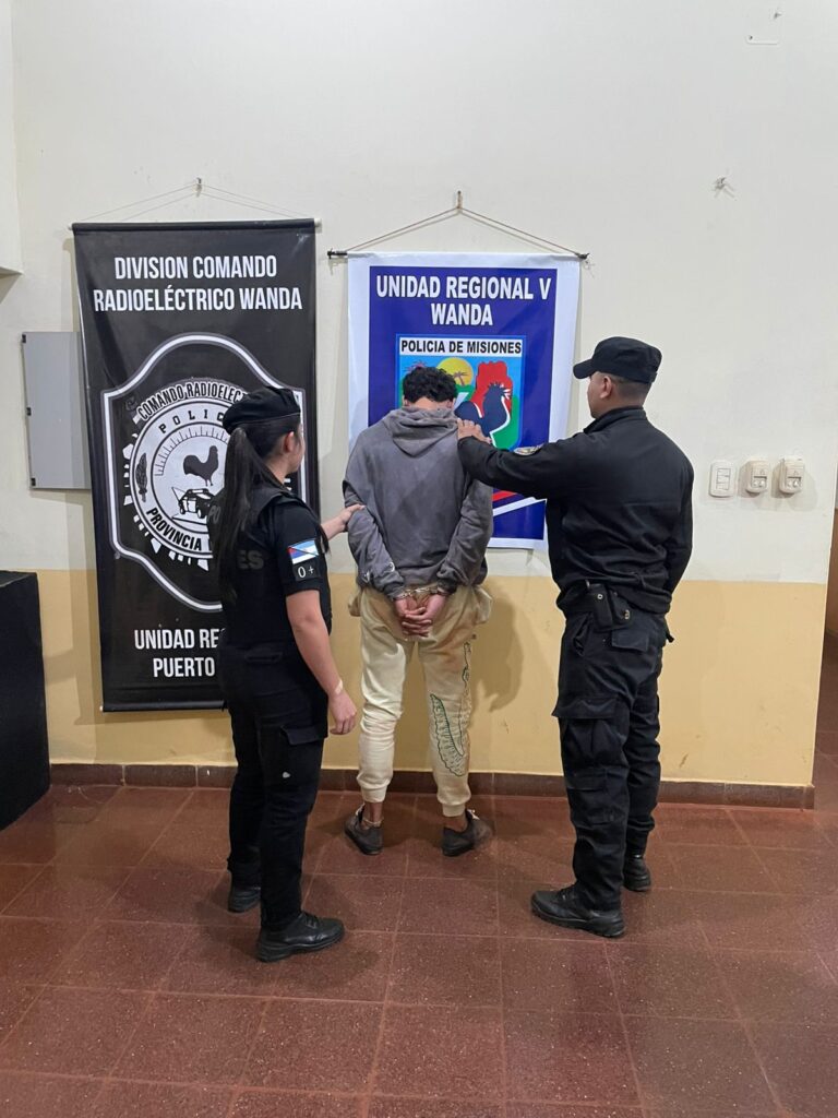 En la localidad de Wanda, la Policía detuvo a un joven de 22 años con un amplio prontuario delictivo, acusado de un robo agravado ocurrido días atrás durante el cual habría robado a un joven de 17 años con un arma de fuego. El operativo permitió su aprehensión y la atención de un efectivo que resultó lesionado durante el procedimiento.