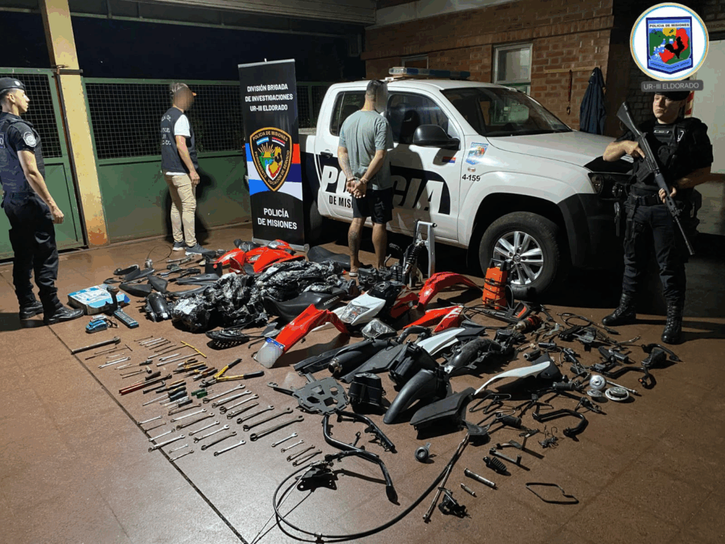 Un allanamiento en el kilómetro 9 de Eldorado permitió detener a un hombre de 28 años acusado de desarmar motocicletas robadas y comercializar sus piezas por redes sociales. Secuestraron carenados de una Honda Wave sustraída días atrás, autopartes con pedido de secuestro en distintas provincias, herramientas y elementos utilizados para el envío de los repuestos.