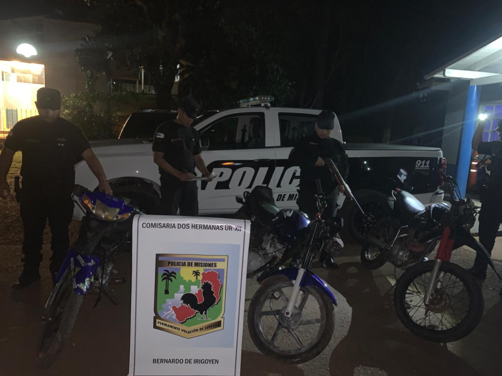 En las últimas horas, en el marco de una investigación iniciada a partir de reiteradas maniobras temerarias y picadas clandestinas detectadas en rutas de la zona, la Comisaría de Dos Hermanas, secuestró tres motocicletas en un monte cercano al paraje Laguna Azul, que habrían sido sustraídas tanto en Brasil como en la provincia de Buenos Aires, y que estaban destinadas a su comercialización ilegal.