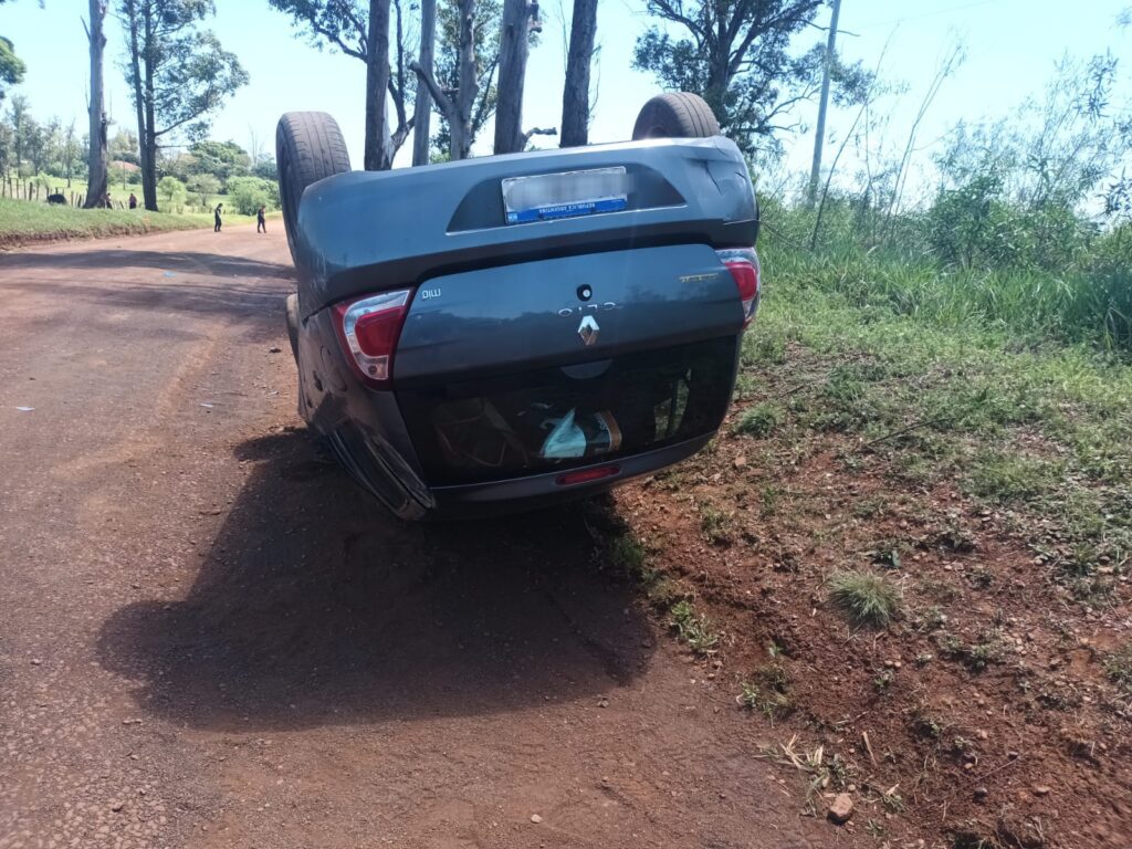 Hoy cerca de las 12:30 horas, un automóvil Renault Clio al mando de un hombre de 31 años, despistó y volcó sobre la avenida Del Té, en el ingreso al barrio Hipódromo de Posadas.