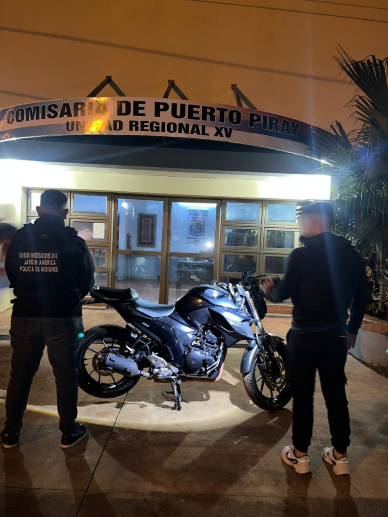 Por otra parte, en Jardín América, investigadores incautaron una motocicleta Yamaha FZ 250 que presentaba pedido de secuestro por hurto en la provincia de Buenos Aires. El procedimiento se originó tras detectar su oferta en redes sociales, lo que permitió pactar un encuentro en Puerto Piray, donde se identificó al poseedor del rodado. La moto fue secuestrada y puesta a disposición judicial.