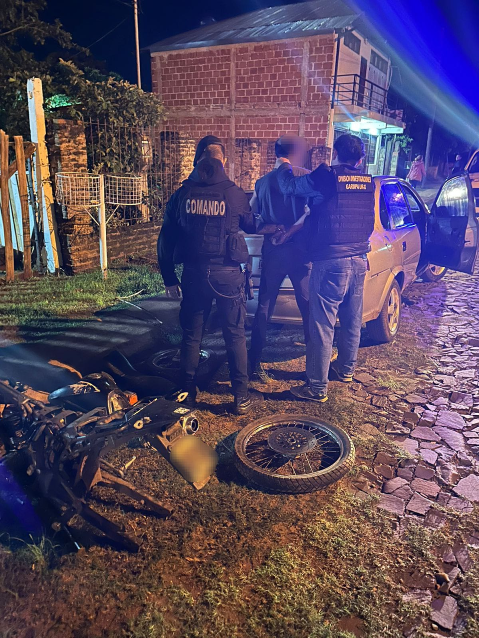 El procedimiento de mayor relevancia se registró en Garupá, donde efectivos de la División Investigaciones detuvieron a un hombre de 41 años en el barrio Santa Clara, tras sorprenderlo desarmando una motocicleta en la vía pública. Al verificar el rodado, constataron que el dominio no correspondía y que presentaba adulteraciones, con el número de motor limado. En ese contexto, el implicado se tornó agresivo e intentó atacar a los uniformados con una herramienta, por lo que fue reducido y detenido. La motocicleta fue secuestrada y quedó a disposición de la Justicia.