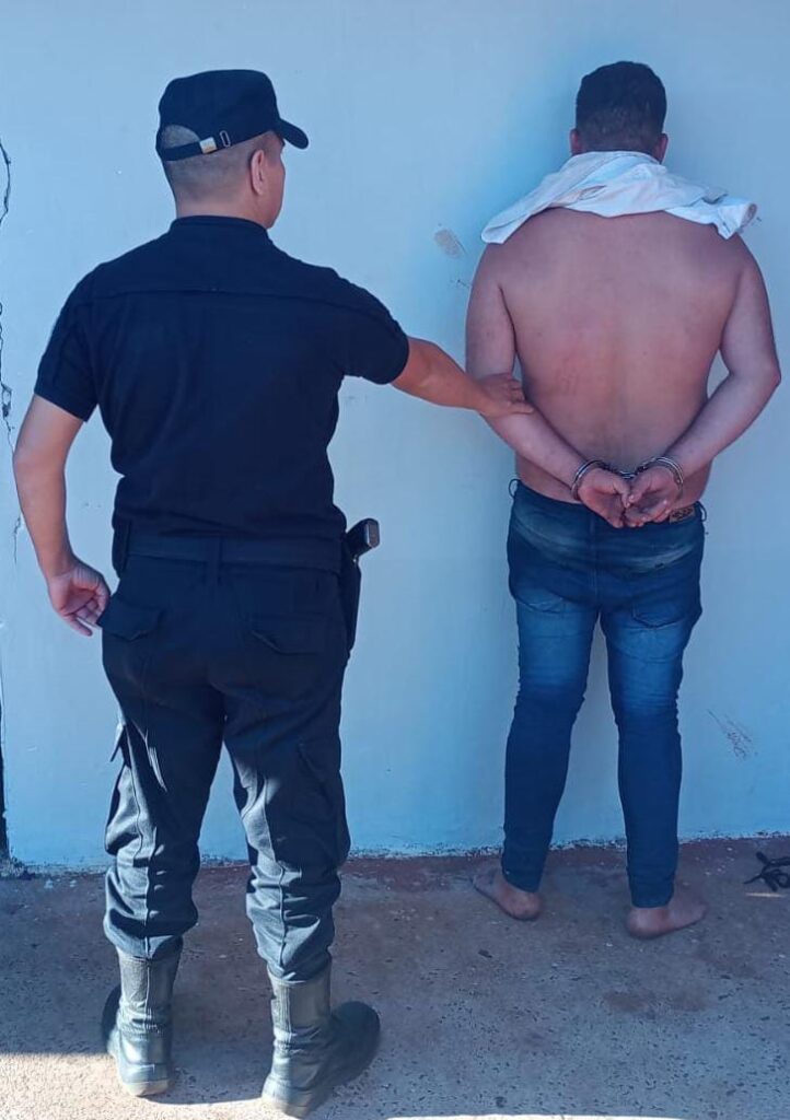 Rápidamente, la patrulla acudió al lugar y detuvieron al hombre que al momento de la intervención policial agredió golpeado a un agente con una barra de hierro en la espalda y brazo.