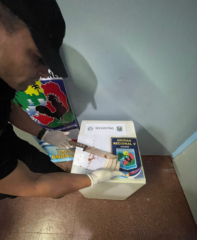 Durante el procedimiento, los policías secuestraron el arma blanca presuntamente utilizada en el ataque y preservaron la escena para las pericias correspondientes. El detenido fue trasladado y alojado en sede policial donde quedó a disposición de la Justicia.