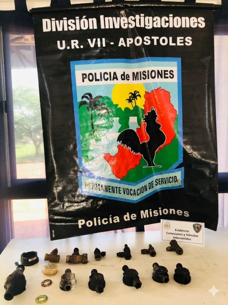 Efectivos de la División Investigaciones de la Unidad Regional VII, junto a personal de la Comisaría Tercera de Apóstoles, lograron esclarecer una serie de hurtos de medidores de agua denunciados durante los últimos días, culminando con la detención de dos sospechosos conocidos con los alias “Cui” y “Paraguay”, además del secuestro de piezas pertenecientes a los dispositivos sustraídos.