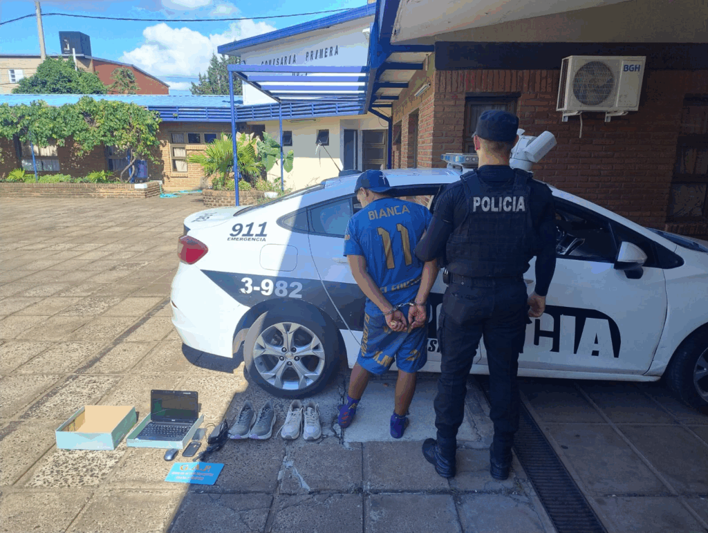 Al momento del arresto, el joven tenía en su poder una notebook marca Acer color azul con su cargador, dos pares de zapatillas marca Jaguar, un teléfono celular Samsung modelo S4 Mini y un mouse inalámbrico, elementos que posteriormente fueron reconocidos como sustraídos.