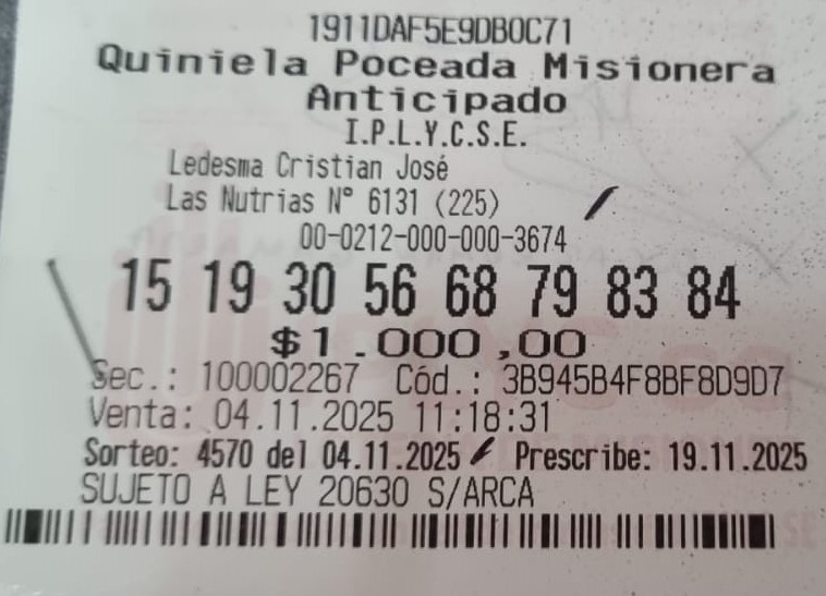 Apenas comprobó que había acertado todos los números y se había convertido en el ganador del primer premio de la Quiniela Poceada Misionera, el trabajador que resultó favorecido, dijo que se puso a saltar de alegría. Fue su forma de festejar. Se había hecho acreedor de 95.699.922 pesos durante el Sorteo N° 4570, en la noche del martes 4 de noviembre.