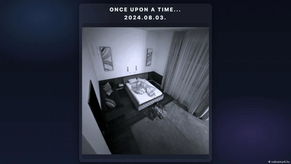 Y luego está la historia de un supuesto video sexual que involucra a Magyar. Hace unos días, una foto en blanco y negro de una cama destendida en una habitación apareció en un misterioso sitio web que lleva el nombre del vicelíder de Tisza, Mark Radnai, pero que no pertenece a él. La imagen fue tomada desde la perspectiva de lo que parece ser una cámara de seguridad.
