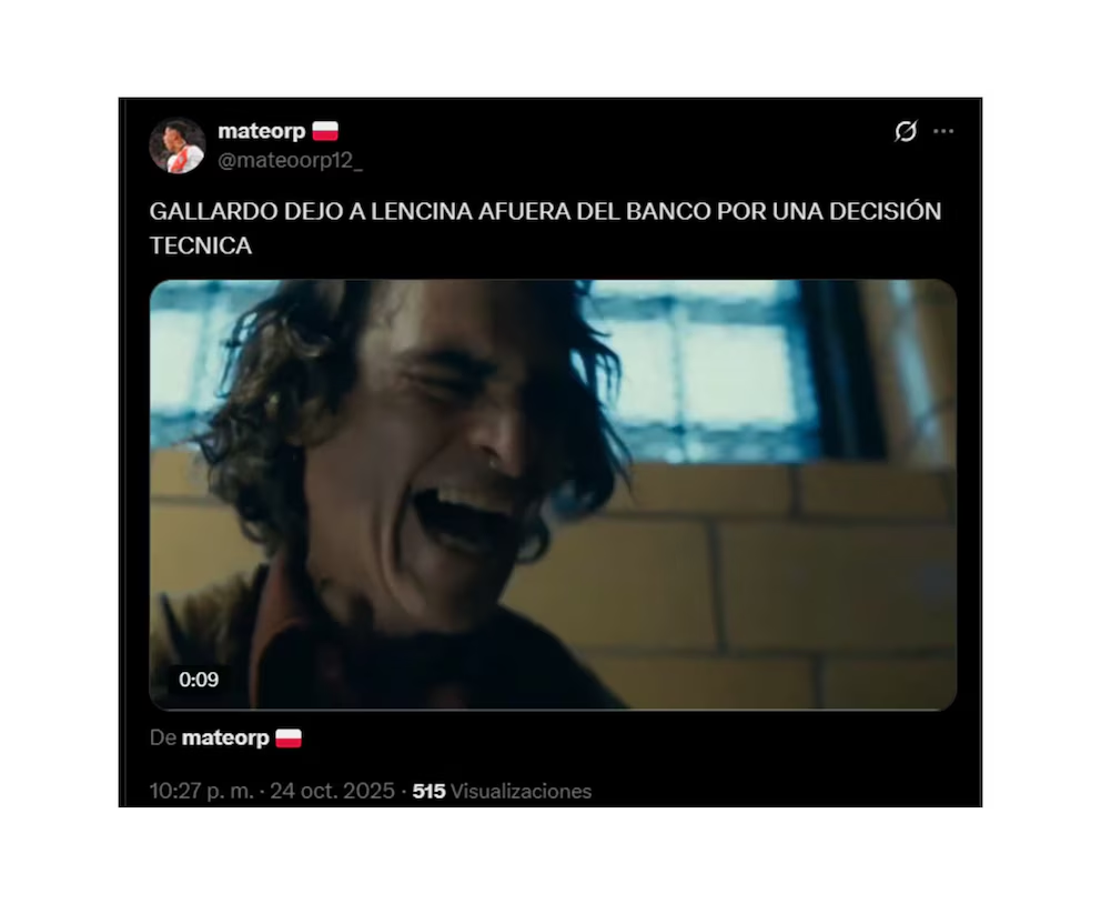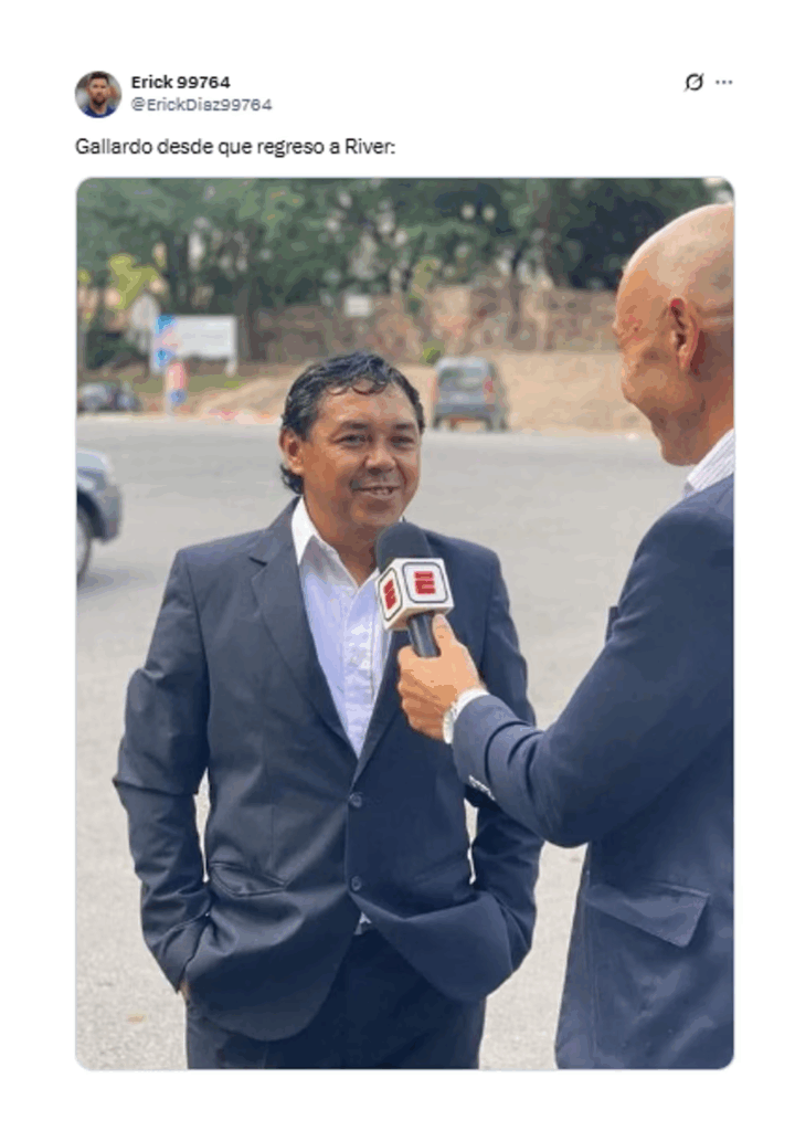El entrenador Marcelo Gallardo, que este año venía de sufrir la eliminación en cuartos de final del Torneo Apertura ante Platense y había quedado afuera en esa misma instancia de la Libertadores ante Palmeiras de Brasil, quedó en el foco de los memes que rápidamente se viralizaron en las redes sociales.