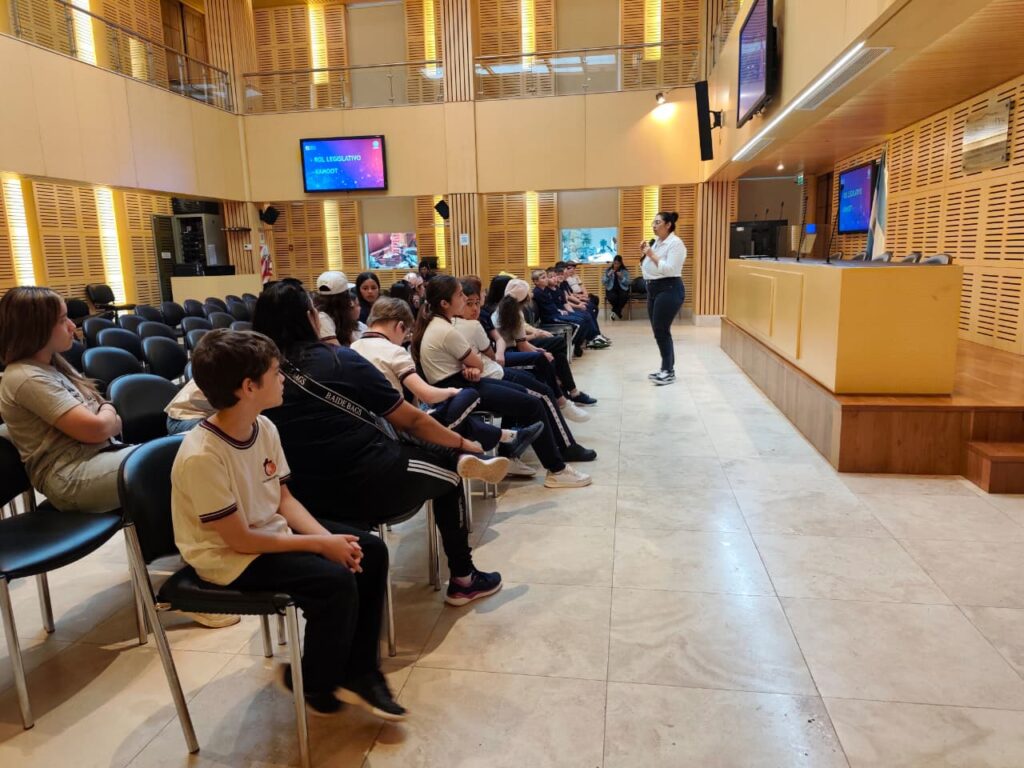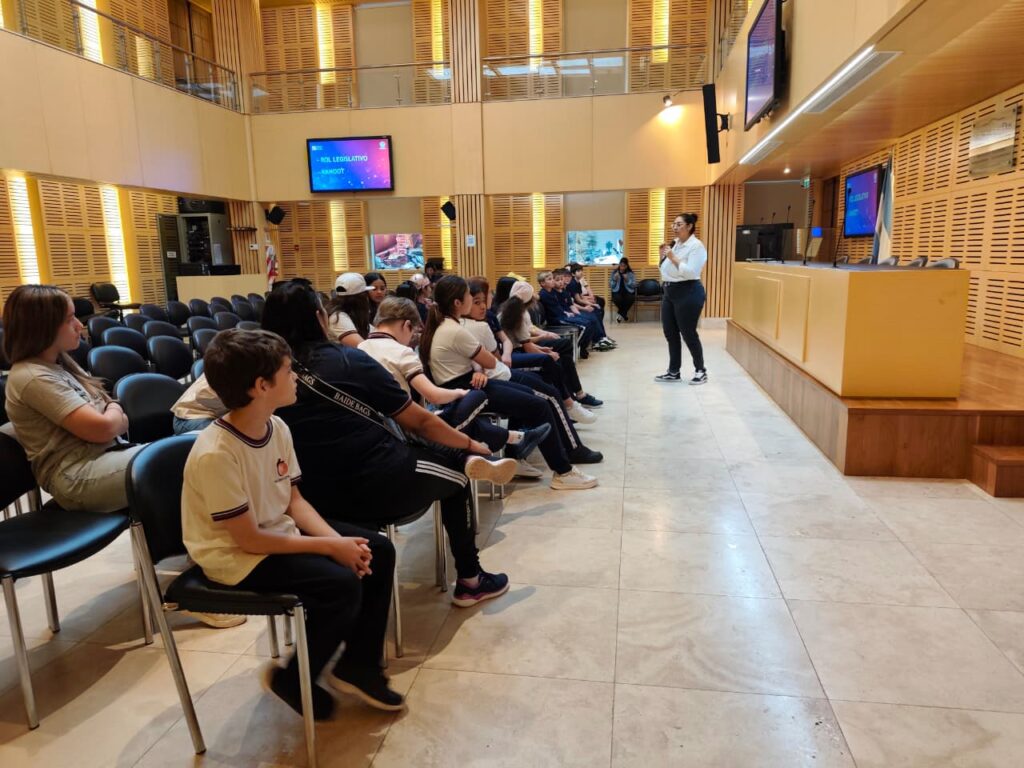 El recorrido comenzó en el Recinto de Sesiones, donde los jóvenes aprendieron sobre el proceso de creación de leyes, el rol de los diputados y la importancia del debate democrático. En este espacio fueron recibidos por el diputado provincial Martín Cesino, quien les dio la bienvenida, destacó el valor de la participación ciudadana y los felicitó por su interés en conocer de cerca la labor legislativa.
