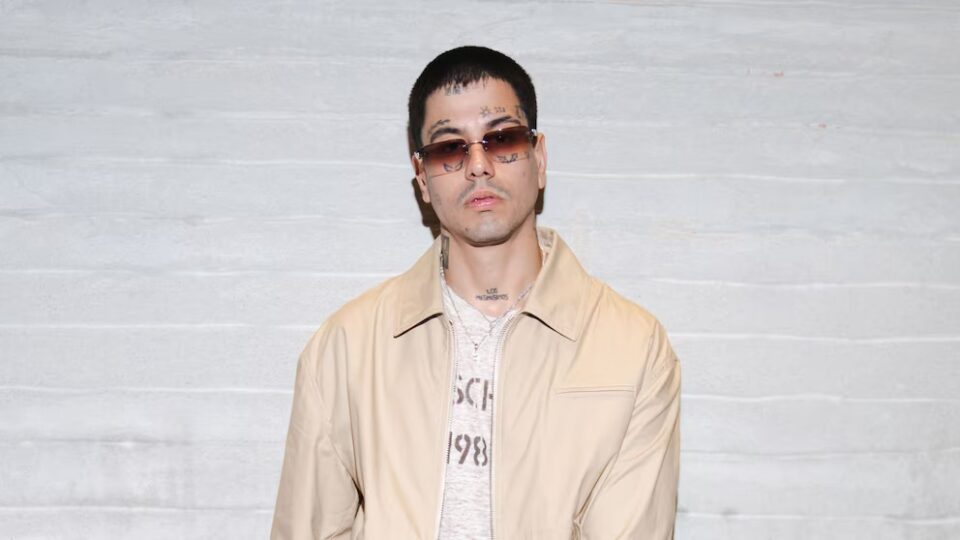 El rapero argentino Duki asiste a la Semana de la Moda de Milán luciendo un conjunto bordado y un bolso Moschino, destacando su estilo único