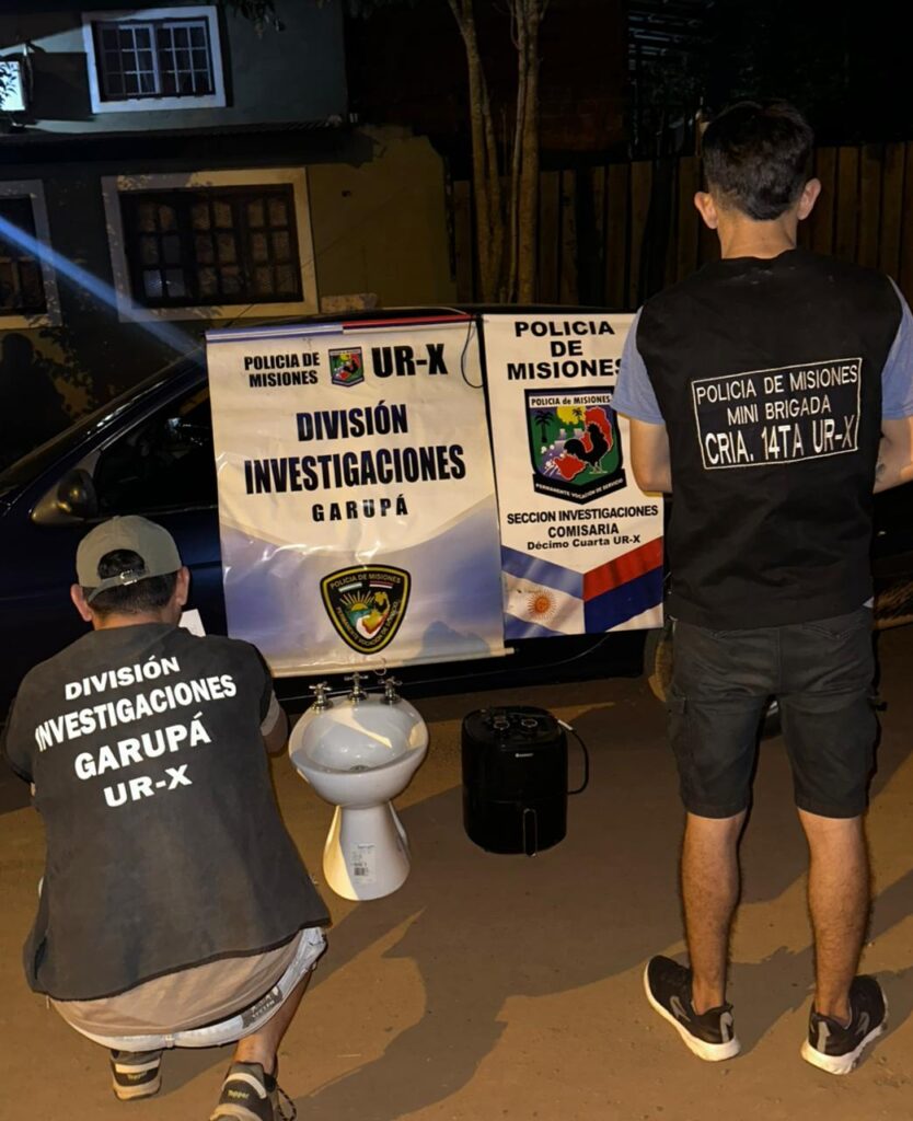 Por otra parte, las tareas investigativas permitieron el recupero de una bicicleta robada en el barrio Génesis, entregada voluntariamente por una vecina; mientras que en Garupá los uniformados secuestraron un teléfono celular sustraído mediante engaño que había sido comercializado en la zona. Además, en otro hecho de robo donde resultó damnificada una mujer de 33 años, se recuperaron una freidora y un bidet que también habían sido vendidos en el barrio Los Paraísos.