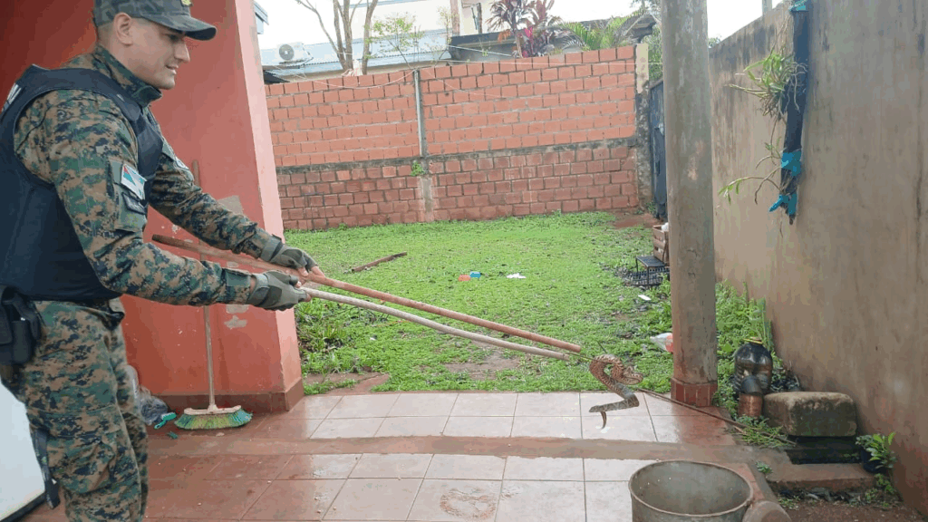 Tras el arribo de personal policial de la Dirección Defensa del Medio Ambiente y Delitos Rurales, se constató efectivamente la presencia de una yarará, la cual bajo las reglas de bioseguridad, fue resguardada y retirada del domicilio, sin registros de incidentes.