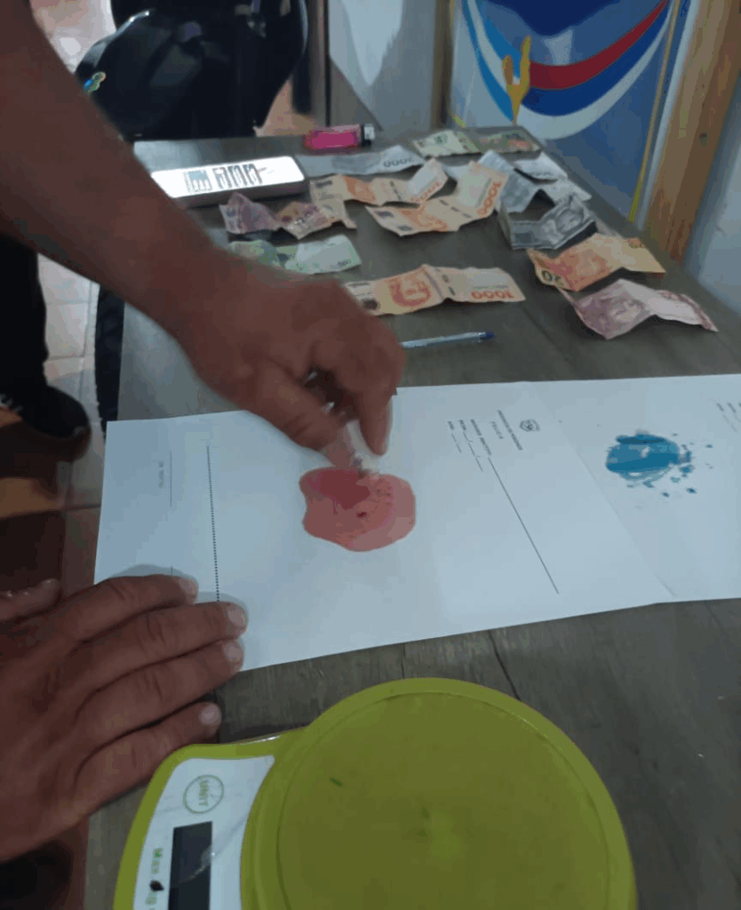 Posteriormente, personal de la División Drogas Peligrosas realizó los test orientativos correspondientes, confirmando que las sustancias halladas dieron positivo para clorhidrato de cocaína y cannabis sativa, procediéndose al secuestro de la droga, el dinero y los demás elementos de interés para la causa.