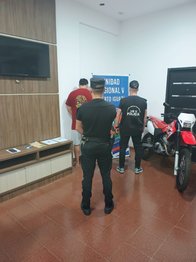 El segundo hecho se registró el sábado alrededor de las 21:30 horas, en Puerto Iguazú, sobre la calle Marta Schwarts casi Bernabé Méndez, donde un motociclista intentó evadir un control policial, pero fue detenido tras una persecución controlada. Se trataba de Kevin Agustín R. (26), quien llevaba en su poder envoltorios con cocaína, dinero en efectivo y un teléfono celular. La Justicia Federal dispuso la detención del implicado, el secuestro de la droga, el dinero, el celular y la motocicleta.