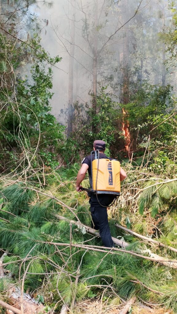 Cerca de las 16:55 horas de este jueves, el personal policial acudió a una chacra ubicada en cercanías del arroyo Chapa, en el municipio de Gobernador Roca, donde se había originado un foco de incendio en un pinal.
