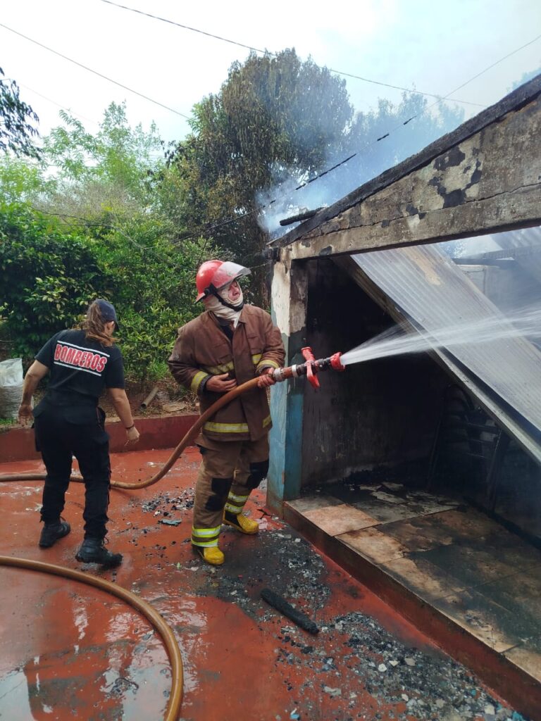 Este sábado a las 07:00 horas, personal policial y de Bomberos Voluntarios intervinieron ante un incendio registrado en una vivienda del barrio Cinco Bocas, sobre la Calle 17 de Octubre, en Campo Viera.