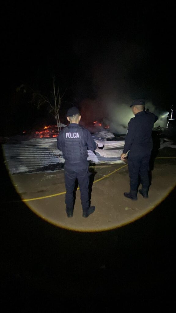 Personal policial preservó el lugar mientras los Bomberos Voluntarios trabajaban en la extinción del fuego, logrando controlar la situación sin mayores inconvenientes.