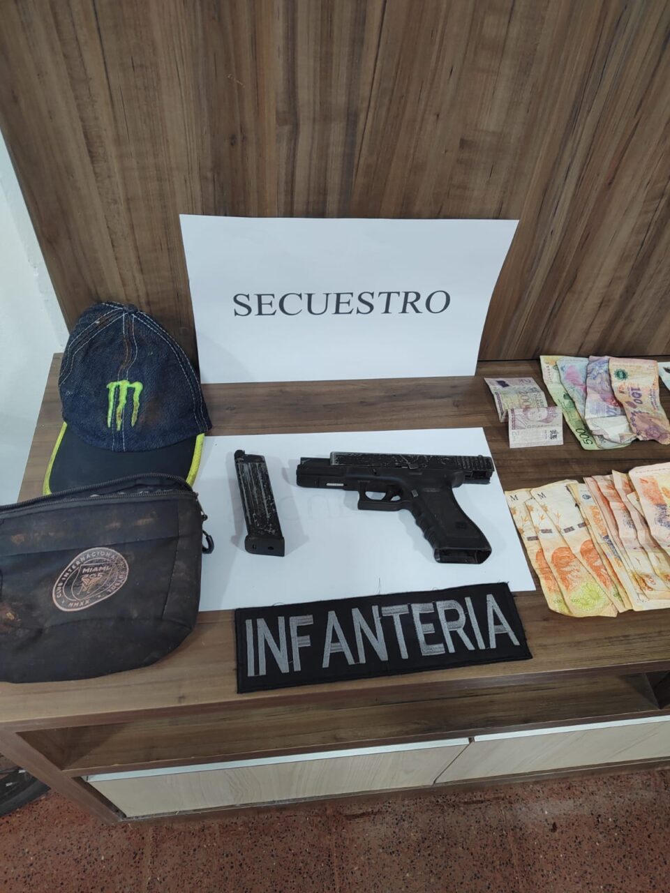 Con esos datos, el personal policial logró interceptar al sospechoso en inmediaciones del predio conocido como “Piedra Preciosa”, donde fue detenido. Durante el cacheo, se constató que llevaba una réplica de arma de fuego oculta entre sus prendas, la cual fue secuestrada junto con otros elementos.