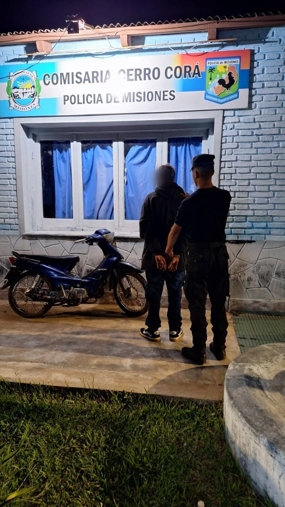 Un hombre de 27 años fue detenido durante la madrugada de este jueves en el paraje Bella Vista, jurisdicción de Cerro Corá, luego de intentar huir al advertir la presencia policial mientras se encontraba con una motocicleta sin documentación, cuyo origen y procedencia se investigan.