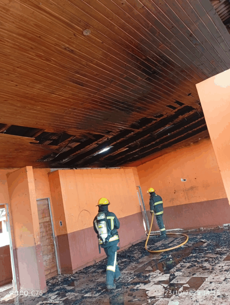Esta tarde, efectivos de la División Bomberos y Bomberos Voluntarios de Jardín América intervinieron ante un principio de incendio registrado en un edificio abandonado, ubicado sobre la calle Atuel del barrio Capilla Uno. No hubo personas lesionadas.