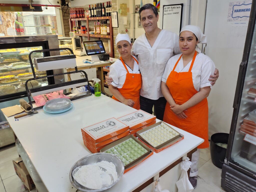 “En este local fui encargado general desde 2015 hasta 2019 -rememora Jorge con lujo de detalles-. Hasta que, un día el dueño, Sebastián, decidió poner en venta la fábrica de pastas y abrir otra en Miami. En ese momento, me afloró un dicho de cabecera, ‘el que no arriesga no gana’, y le ofrecí alquilarle el fondo de comercio, haciéndome cargo del personal. Sin embargo, luego de consultarlo con su abogado, en vez de alquilarlo, me lo dio a pagar en cinco años. Por eso, siempre estaré muy agradecido con él y con su padre, Horacio”.
