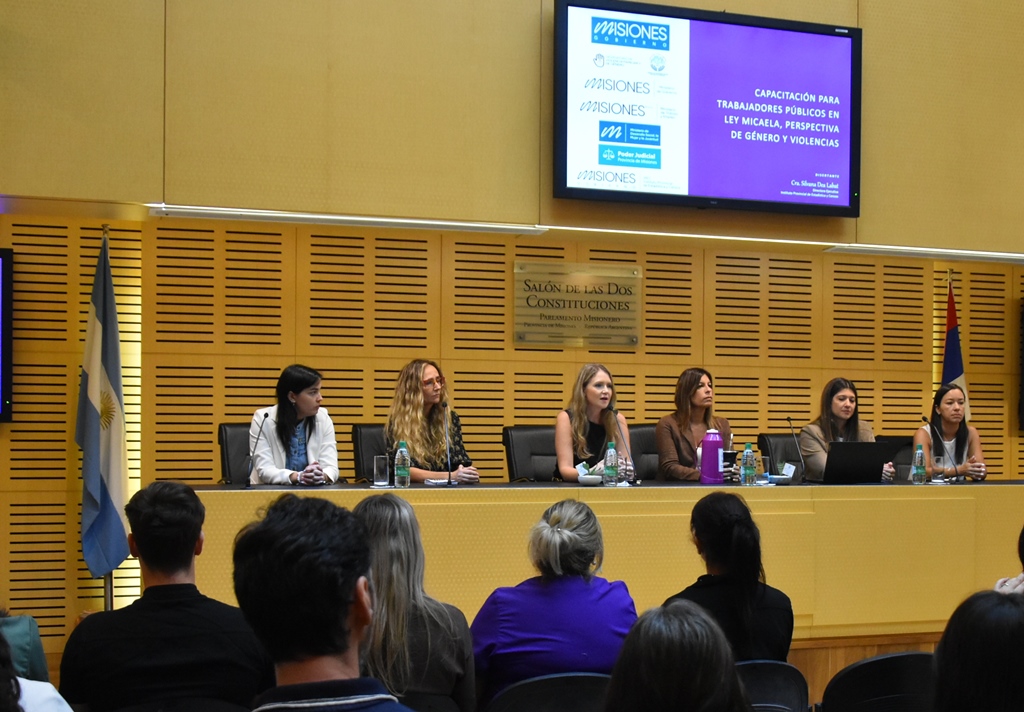 Agentes de la Legislatura misionera participaron en el Salón de las Dos Constituciones de una jornada formativa centrada en la prevención de la violencia de género en el ámbito laboral, conforme a los lineamientos de la Ley Micaela. La actividad estuvo a cargo de equipos del Observatorio Provincial de Violencia Familiar y de Género, del Observatorio de Violencia Laboral del Ministerio de Trabajo y Empleo y del Instituto Provincial de Estadística y Censos (IPEC). El objetivo de la Legislatura es mantener espacios de reflexión permanentes para promover entornos institucionales más seguros, respetuosos e igualitarios.
