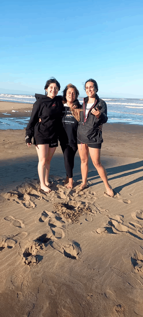 Andrea en la playa con sus hijas, Valentina y Carla