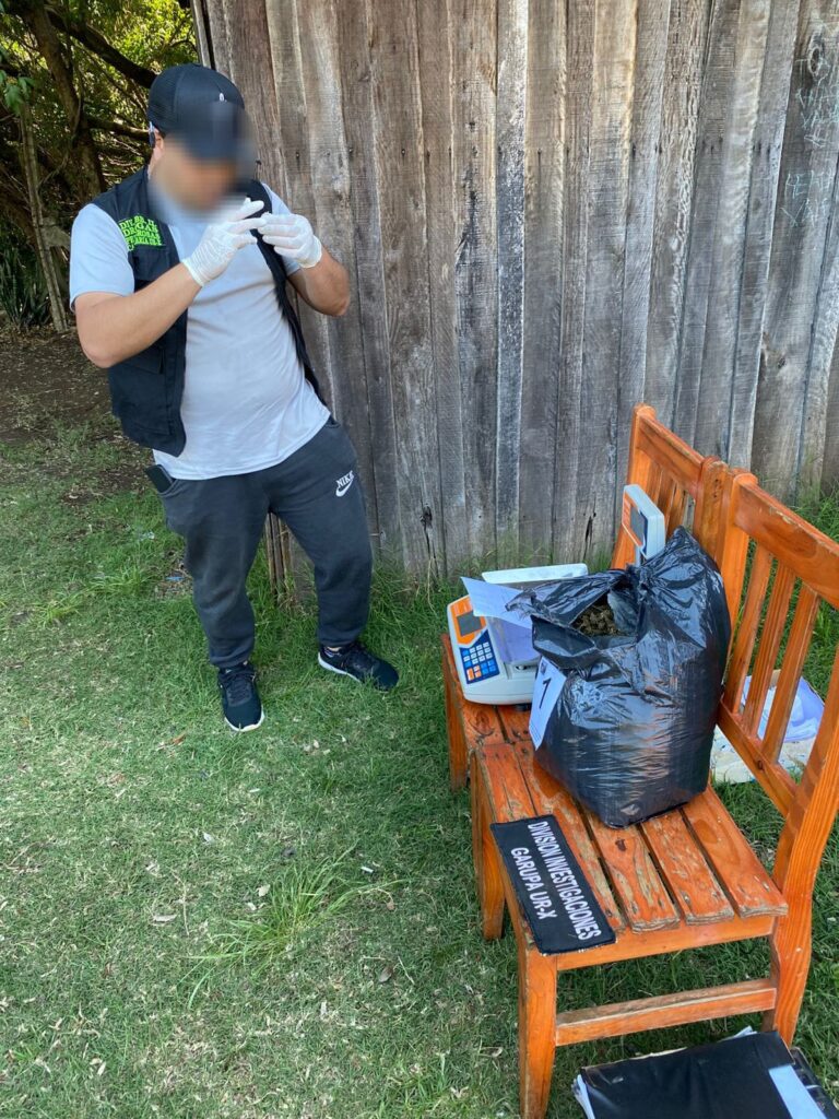El procedimiento se inició cerca de las 16:00, cuando observaron a un hombre que caminaba con una bolsa negra y que, al notar la presencia policial, huyó. En la fuga arrojó el bulto dentro del patio de una vivienda, cuyo propietario rápidamente alertó a los agentes.