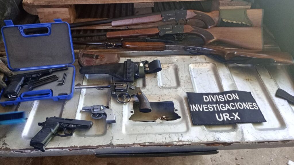 Posteriormente, cerca de las 13 horas de este miércoles y por disposición del magistrado interviniente, se concretó un allanamiento en el domicilio del investigado, ubicado en el mismo barrio donde se realizó el encuentro. En el lugar, los uniformados hallaron un total de nueve armas de fuego de distintos calibres y modelos, entre ellas pistolas, revólveres, rifles y pistolones.