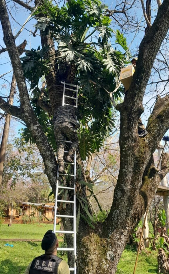 Un ejemplar de erizo fue rescatado este sábado en la zona urbana de Gobernador Roca, luego de que ingresara a un comercio y trepara a un árbol. La División Delitos Rurales de Jardín América intervino para resguardar al animal y devolverlo a su hábitat natural.